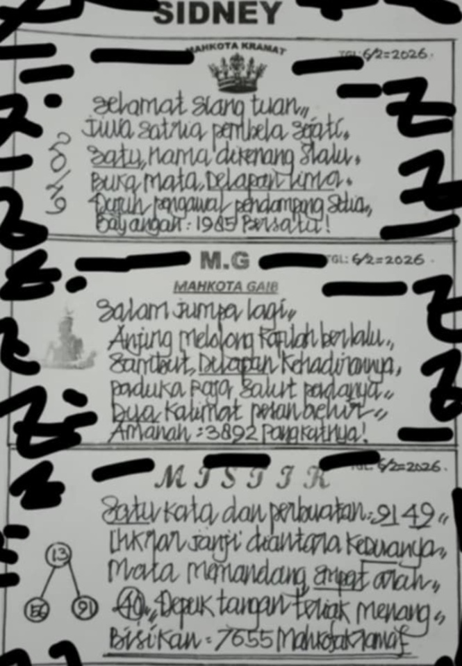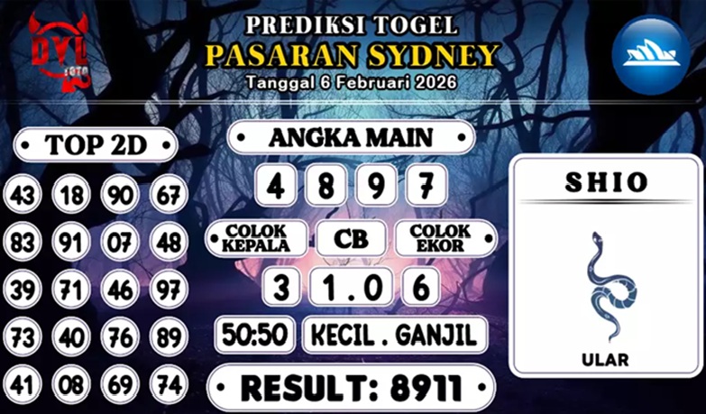 SYAIR PREDIKSI KELUARAN SYDNEY, 6-Feb-2026