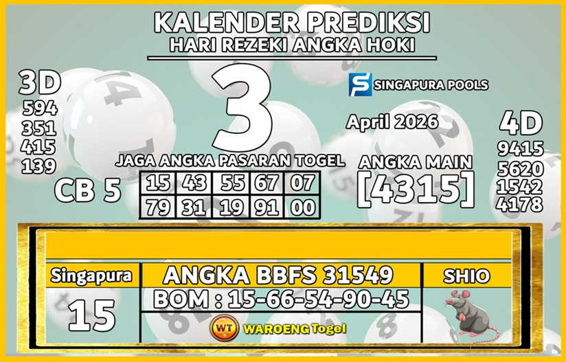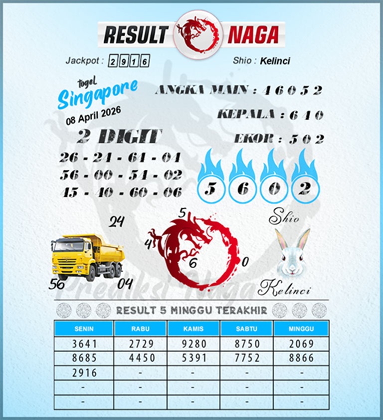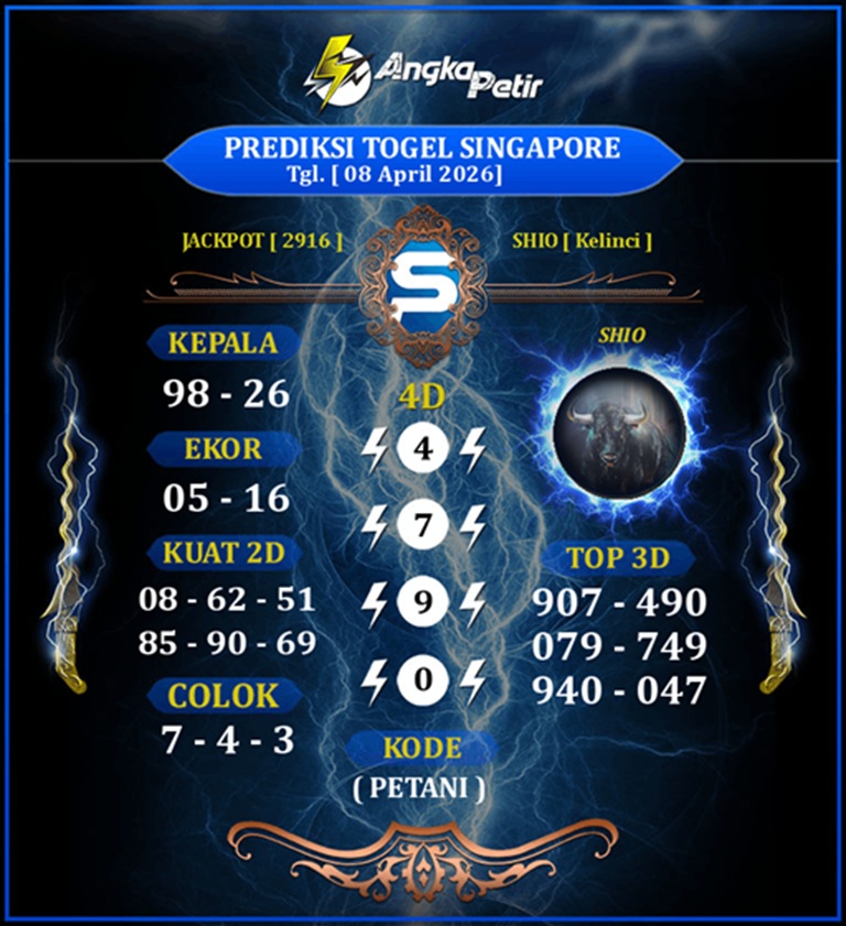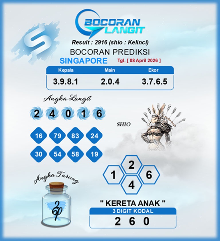 Prediksi Syair Singapore adalah sebuah kegiatan yang dilakukan oleh para players togel atau pemain angka untuk menebak angka yang akan keluar pada putaran togel berikutnya. Prediksi ini biasanya dibuat berdasarkan data – data sebelumnya, seperti angka yang sering keluar maupun pola – pola yang terlihat dari putaran sebelumnya.