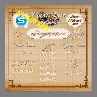 Prediksi Syair Singapore adalah sebuah kegiatan yang dilakukan oleh para players togel atau pemain angka untuk menebak angka yang akan keluar pada putaran togel berikutnya. Prediksi ini biasanya dibuat berdasarkan data – data sebelumnya, seperti angka yang sering keluar maupun pola – pola yang terlihat dari putaran sebelumnya.